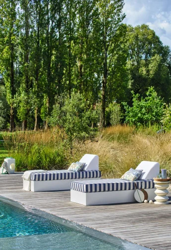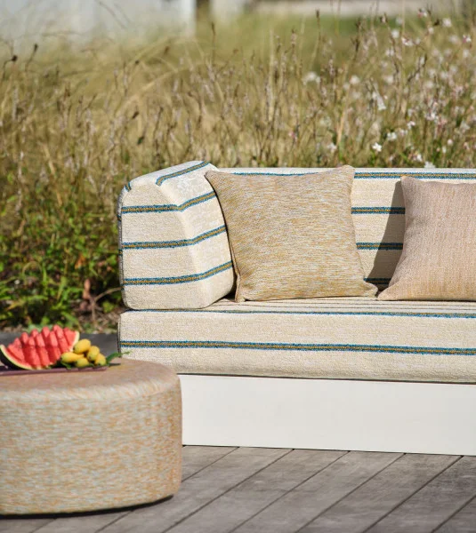 “BONDI BEACH” radiates with Australia’s bright sunshine, a blend of ocean influences and urban energy. Designed for outdoor use, this cheerful collection combines rich textures and reimagined stripes, with strong horizontal lines and the rhythm of the waves…An added touch of light and vitality comes from the refined botanic pattern that accompanies the collection. The fabric in the “BONDI BEACH” collection are high-performance. They are woven using solution-dyed yarns (except for the “BONDI BEACH” pattern) in order to guarantee perfect lightfastness. They are also resistant to chlorinated and saltwater. Finally, our outdoor products are mildew-resistant. The “BONDI BEACH” fabrics are water-repellent, for easier care (except Cape Pillar : 4734 et Gold Coast : 4756)