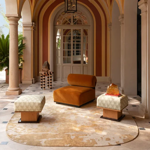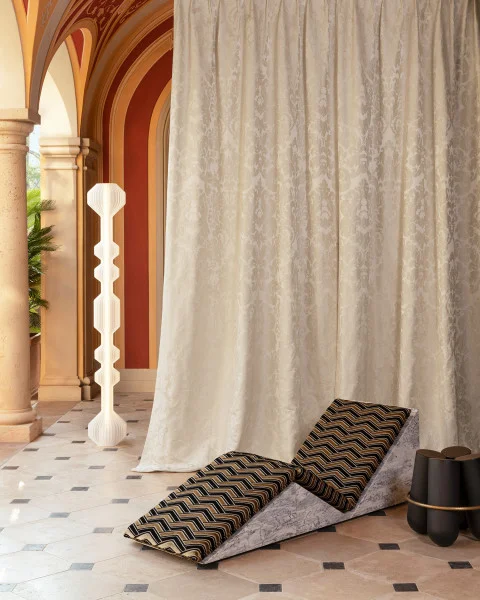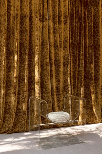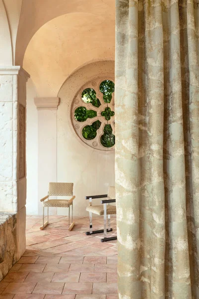 It is off the sparkling coast of Capri that MISIA weaves its new collection of gold, pewter, and silver. Between steep cliffs and luxurious cliffside villas, the island reveals its changing landscapes, where light unfolds in precious shimmers, reflections transposed onto the fabrics of the Caprissima collection. Curly textures with sensual volumes, velvets sculpted by laser fire, veils with precious geometry, handcrafted embroidery with distant echoes... Sometimes raw and textured, like the rocks of Monte Solaro, sometimes shimmering and glossy, like the mainsails of the Marinas, the fabrics play on contrasts of shine and matte to compose a luxurious score, in a canvas combining artisanal virtuosity and the greatest textile innovation. The color palette also reflects the contrasts of Capri: bronze, copper, burnt orange, and pewter combine with the cool shades of silver, aqua, frost, and eternal blue, joined by deep greens.