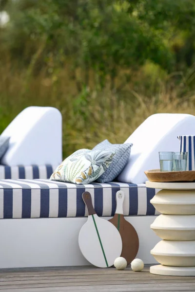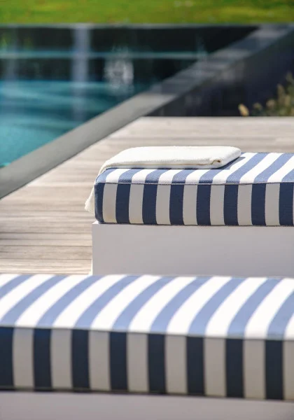 “BONDI BEACH” radiates with Australia’s bright sunshine, a blend of ocean influences and urban energy. Designed for outdoor use, this cheerful collection combines rich textures and reimagined stripes, with strong horizontal lines and the rhythm of the waves…An added touch of light and vitality comes from the refined botanic pattern that accompanies the collection. The fabric in the “BONDI BEACH” collection are high-performance. They are woven using solution-dyed yarns (except for the “BONDI BEACH” pattern) in order to guarantee perfect lightfastness. They are also resistant to chlorinated and saltwater. Finally, our outdoor products are mildew-resistant. The “BONDI BEACH” fabrics are water-repellent, for easier care (except Cape Pillar : 4734 et Gold Coast : 4756)